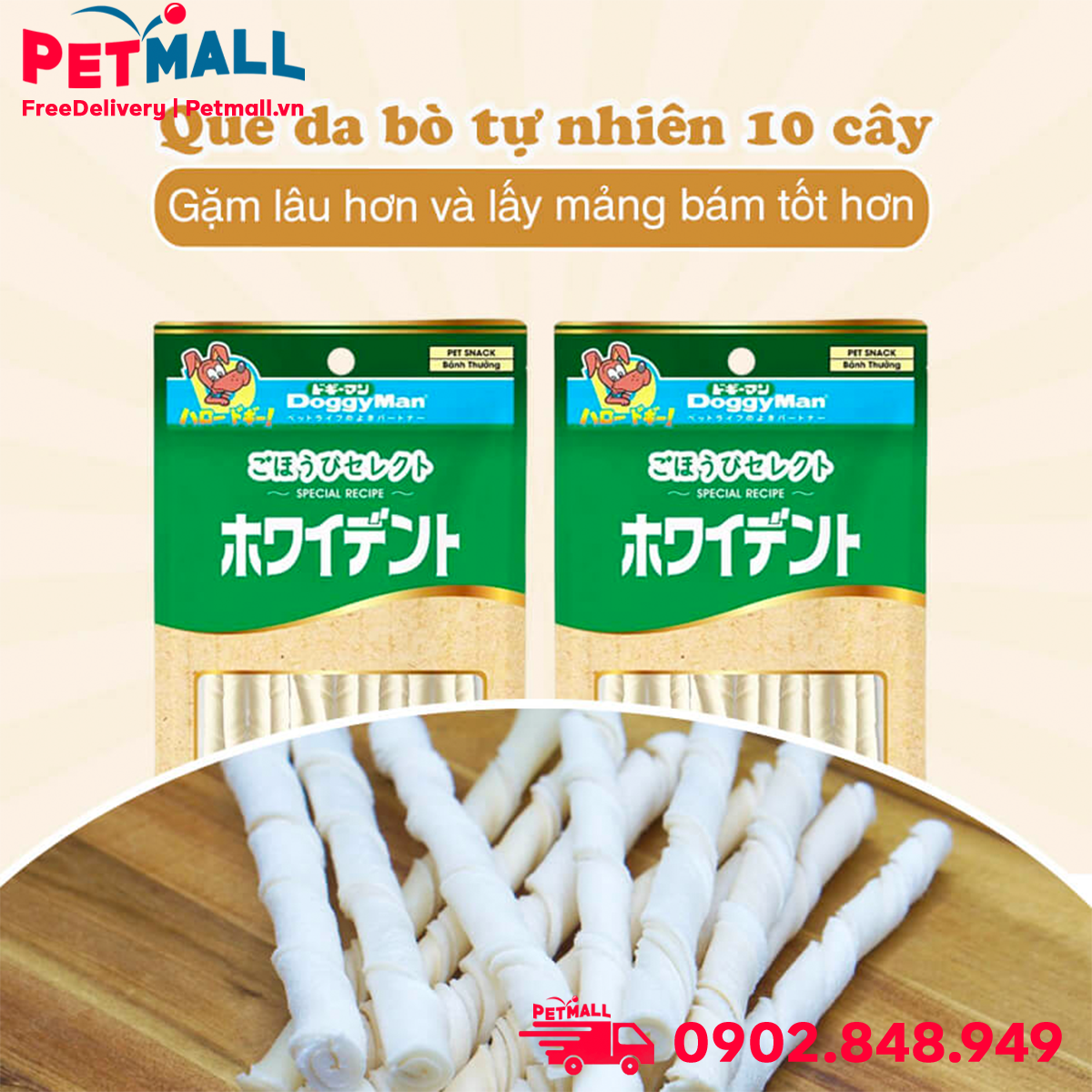 - Que da bò tự nhiên DoggyMan 10 cây - Thơm miệng, giảm mảng bám cao răng Petmall