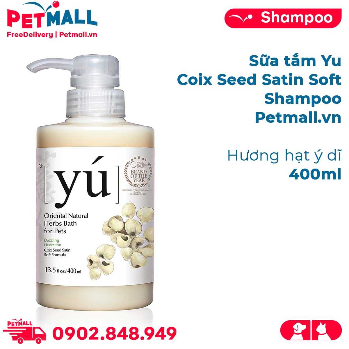 - Sữa tắm Yú Coix Seed Satin Soft Shampoo 400ml - Hương hạt ý dĩ Petmall