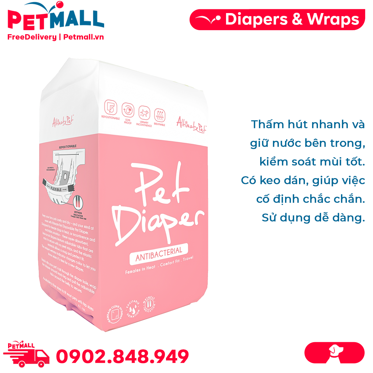 Tã cho chó cái Pet Diaper Antibacterial - 12 miếng | 15.9 - 20.4kg Petmall