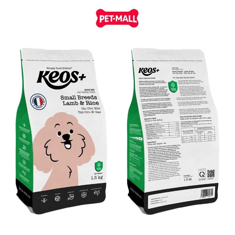 1.5KG - Thức ăn chó KEOS Small Breeds Lamb & Rice Adult - Vị Thịt Cừu và Gạo, dành cho chó giống nhỏ Petmall