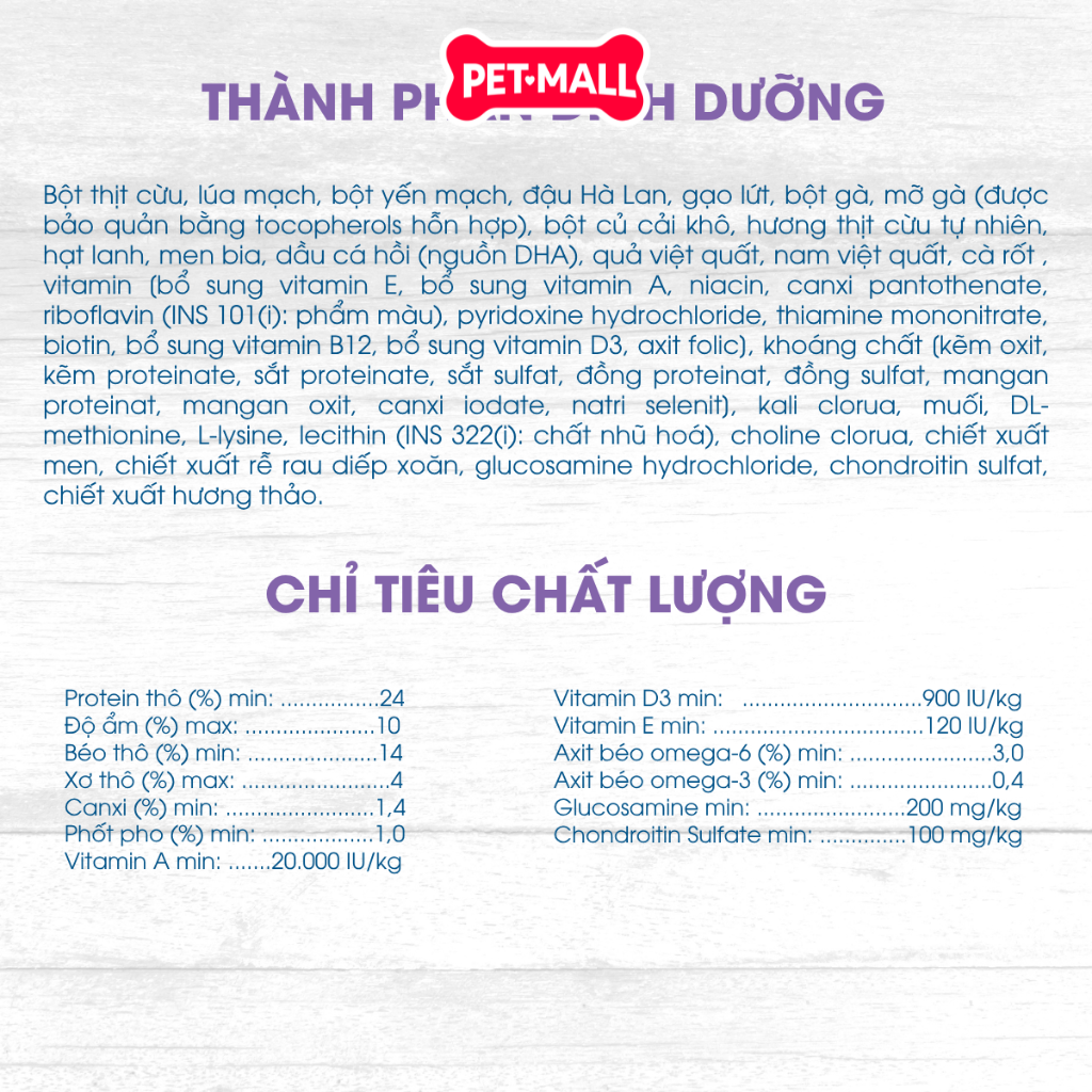 - Sản phẩm chính hãng, nguồn gốc rõ ràng: Petmall.vn cam kết 100% sản phẩm có nguồn gốc xuất xứ minh bạch, từ các thương hiệu uy tín hàng đầu, đảm bảo an toàn và tốt nhất cho sức khỏe thú cưng của bạn.