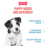Hạt nhỏ chuyên biệt: Kích thước hạt được thiết kế vừa vặn với hàm nhỏ của chó con, giúp chúng dễ dàng nhặt và nhai, đồng thời hỗ trợ sức khỏe răng miệng.