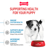 Hệ miễn dịch khỏe mạnh: Chứa phức hợp chất chống oxy hóa đã được cấp bằng sáng chế (Vitamin E & C), giúp tăng cường hệ miễn dịch tự nhiên của chó con, bảo vệ chúng khỏi các tác nhân gây hại.
