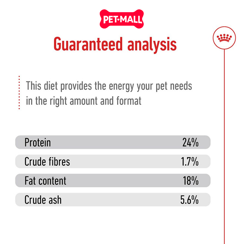 Thành phần chính: Protein gia cầm sấy khô, gạo, ngô, mỡ động vật, protein thực vật dễ tiêu hóa (L.I.P.), dầu cá (nguồn DHA),...