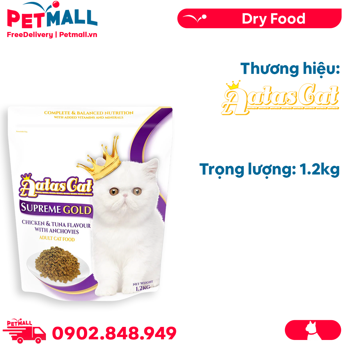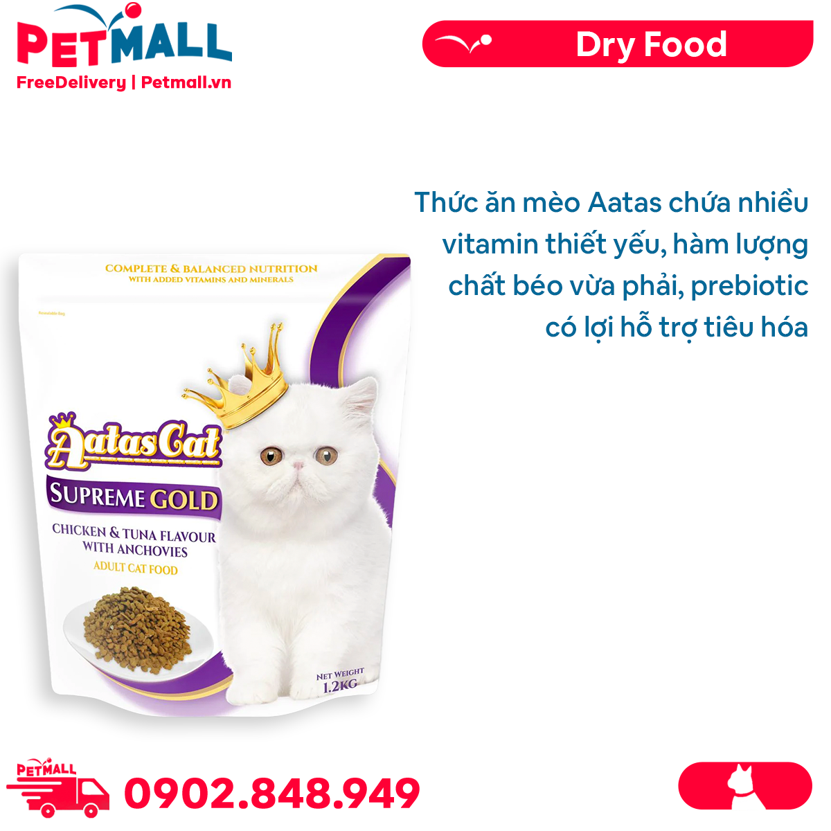 1.2KG - Thức ăn mèo Aatas Supreme Gold Chicken & Tuna Flavour with Anchovy Adult - Thịt gà, Cá ngừ và Cá cơm Petmall