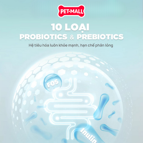 Hỗ trợ tiêu hóa: Bổ sung 10 loại probiotics & prebiotics giúp cân bằng hệ vi sinh đường ruột, hạn chế tình trạng phân lỏng và bảo vệ hệ tiêu hóa khỏe mạnh.