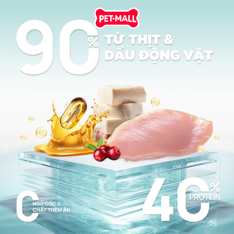 Thành phần chính: Thịt gà, mỡ bò, gan gà, tim gà, dầu cá, mỡ gà.