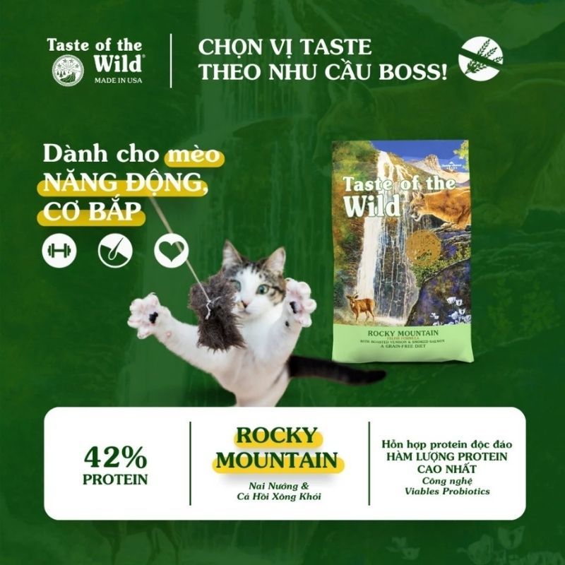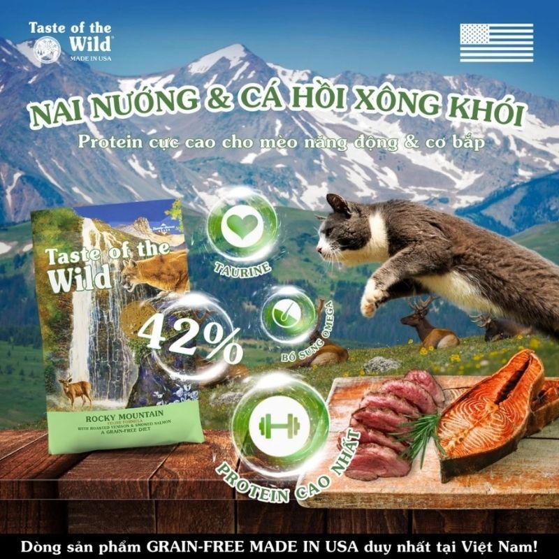 500G - Thức ăn mèo Taste Of The Wild Rocky Mountain - Roasted Venison & Smoked Salmon, Nai Nướng & Cá Hồi Xông Khói - mèo mẹ & mèo con, nhập USA Petmall
