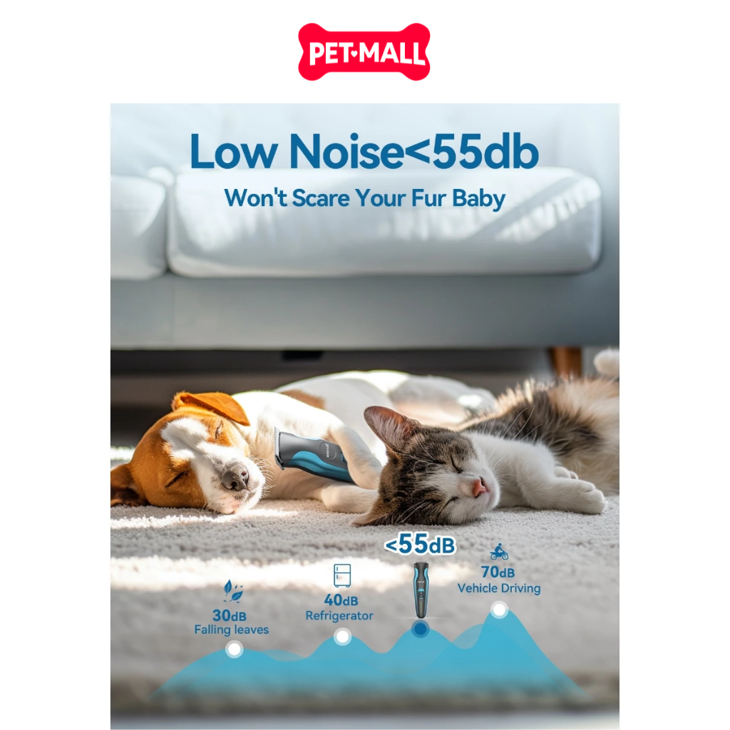 - Độ ồn siêu thấp: Hoạt động dưới 55 dB, tạo không gian thoải mái, giúp thú cưng không sợ hãi hay lo lắng trong quá trình cắt tỉa.