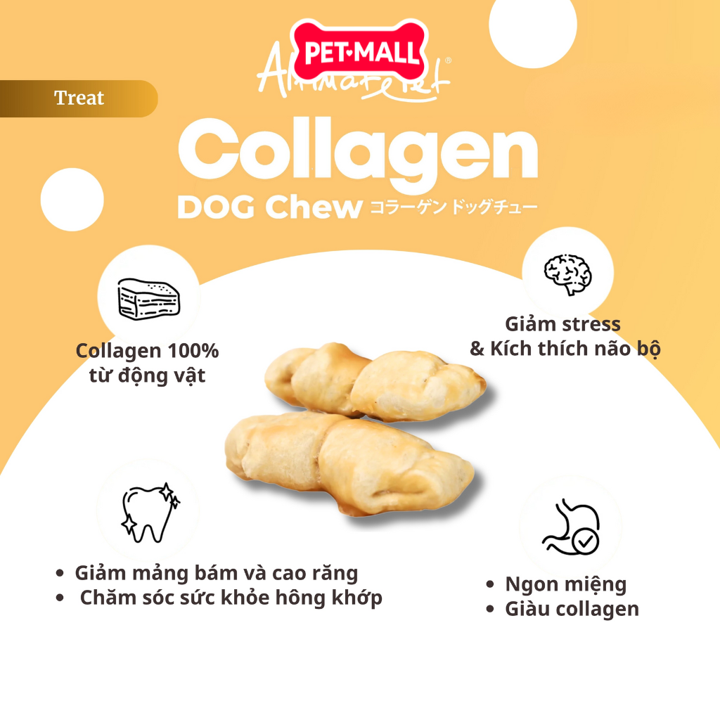 - Thay thế Rawhide an toàn: Được làm từ 100% Gelatin (Collagen thủy phân), dễ tiêu hóa hơn nhiều so với da bò sống truyền thống, giảm nguy cơ tắc nghẽn đường ruột.