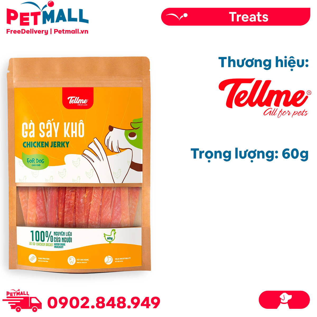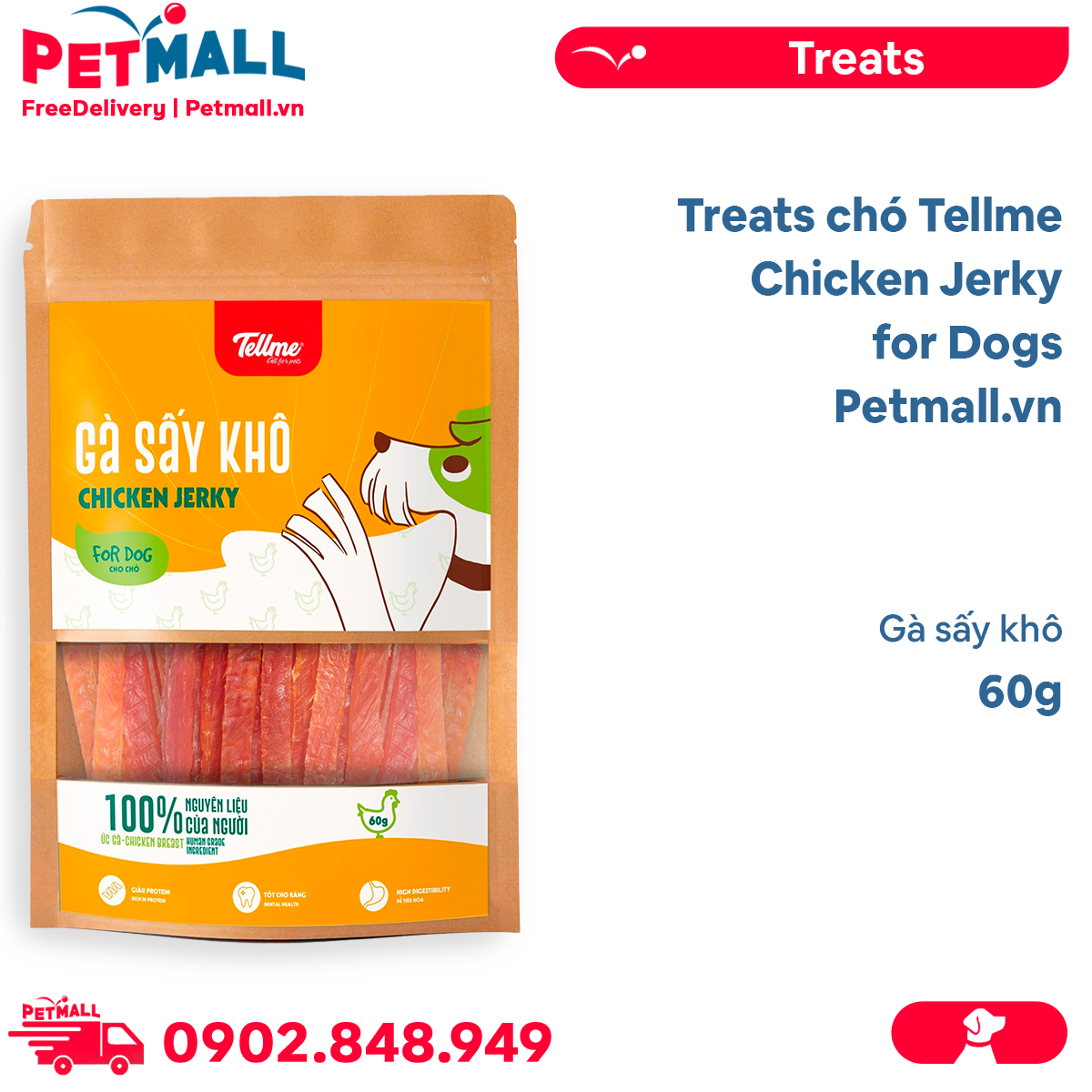 - Treats chó Tellme Chicken Jerky for Dogs 60g - Gà sấy khô Petmall