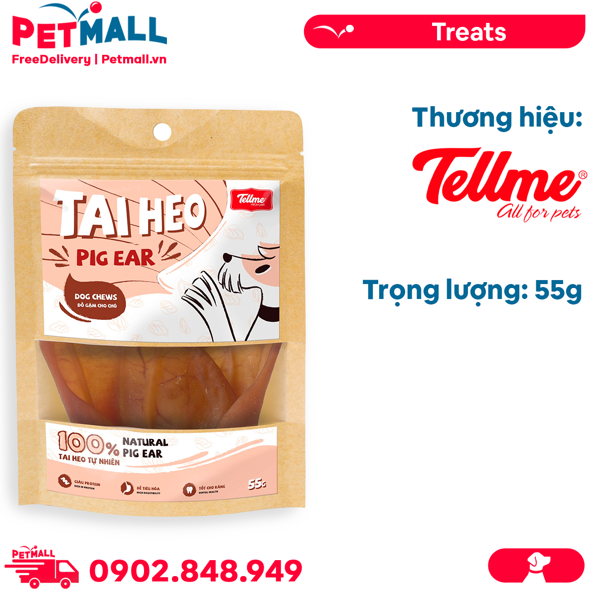 - Treats chó Tellme Pig Ear for Dogs 55g - Tai heo sấy khô Petmall
