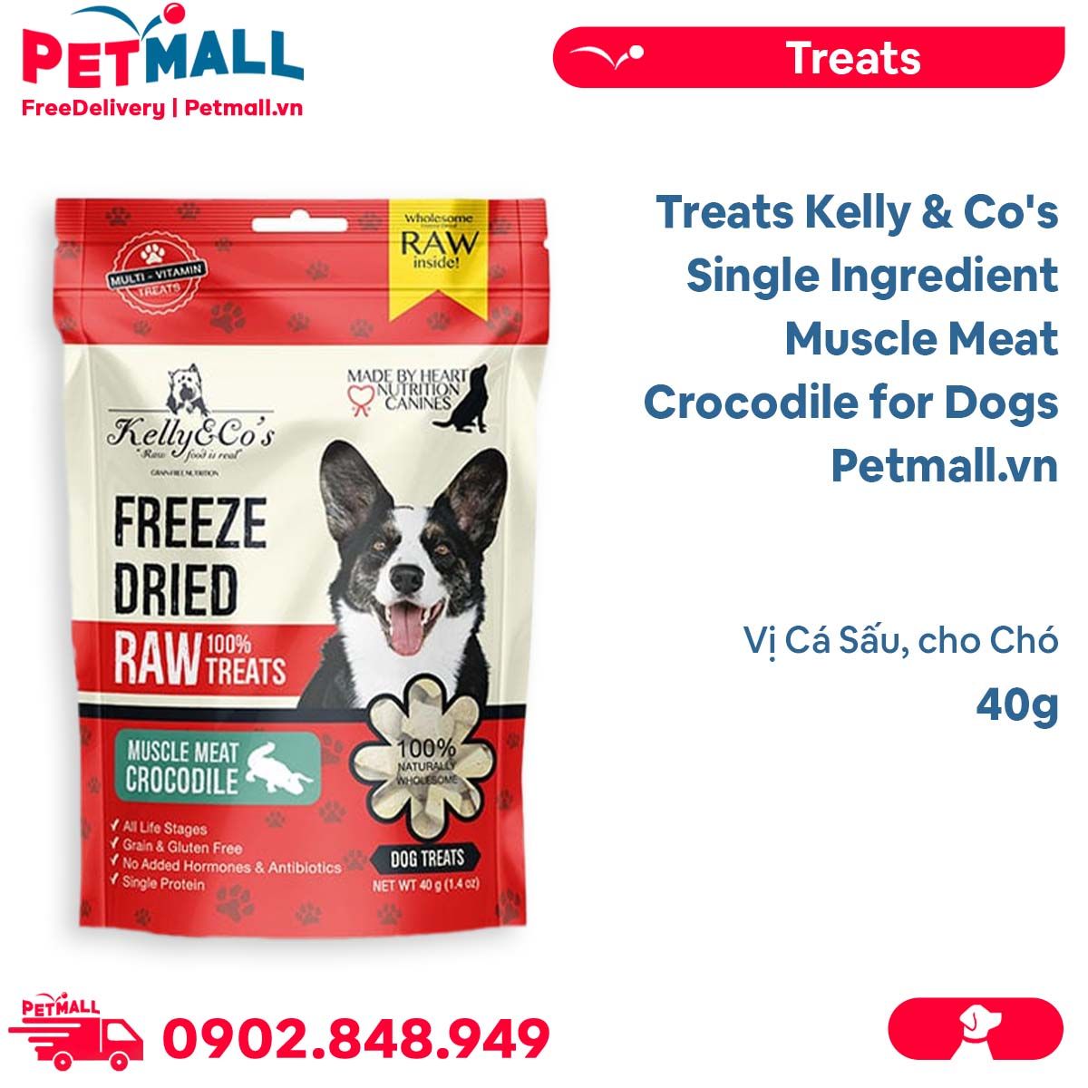 - Treats Kelly & Co's Single Ingredient Muscle Meat Crocodile for Dogs 40g - Vị Cá Sấu, cho Chó Petmall
