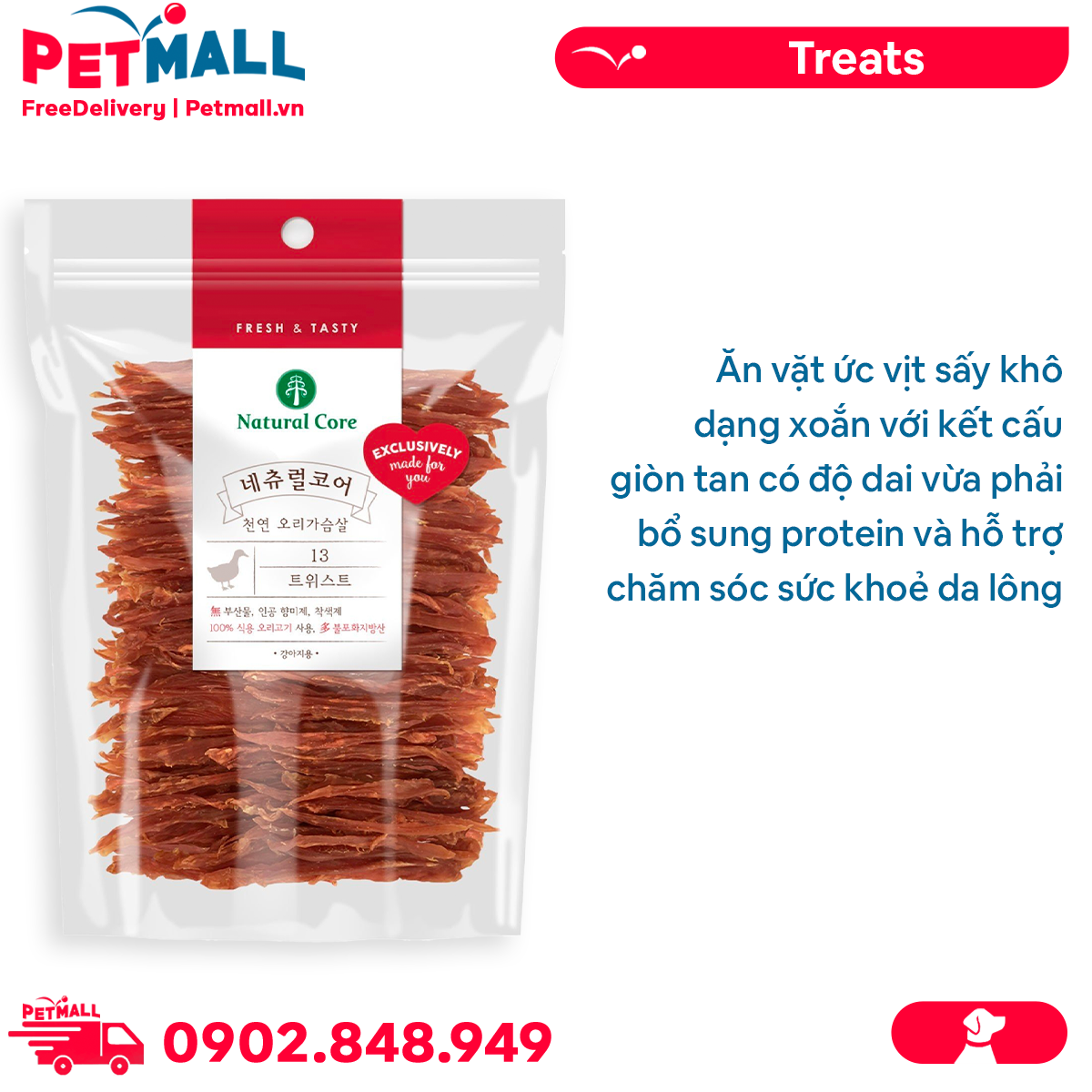 Treats Natural Core Hard Duck Breast Stripes 13 - 180g - Ức vịt sấy khô Petmall