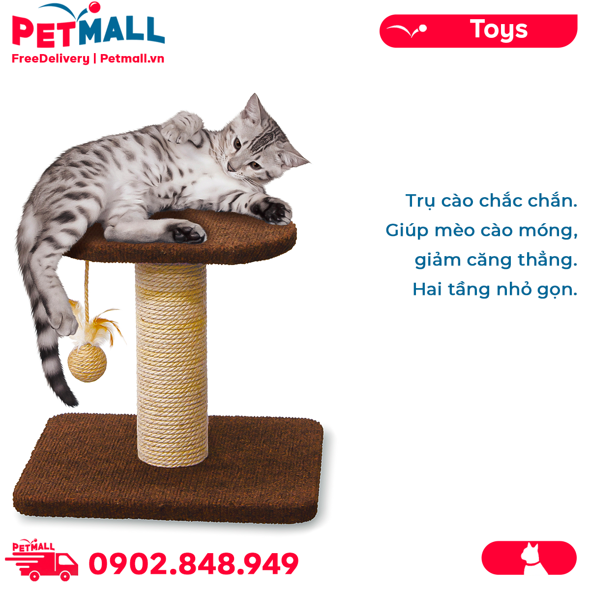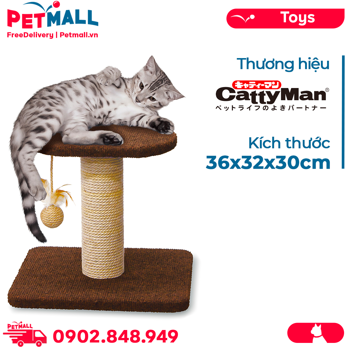 Trụ cào móng 2 tầng có banh CattyMan Scratcher Cat Toys Size 36x32x30cm - Hỗ trợ mèo giảm căng thẳng Petmall