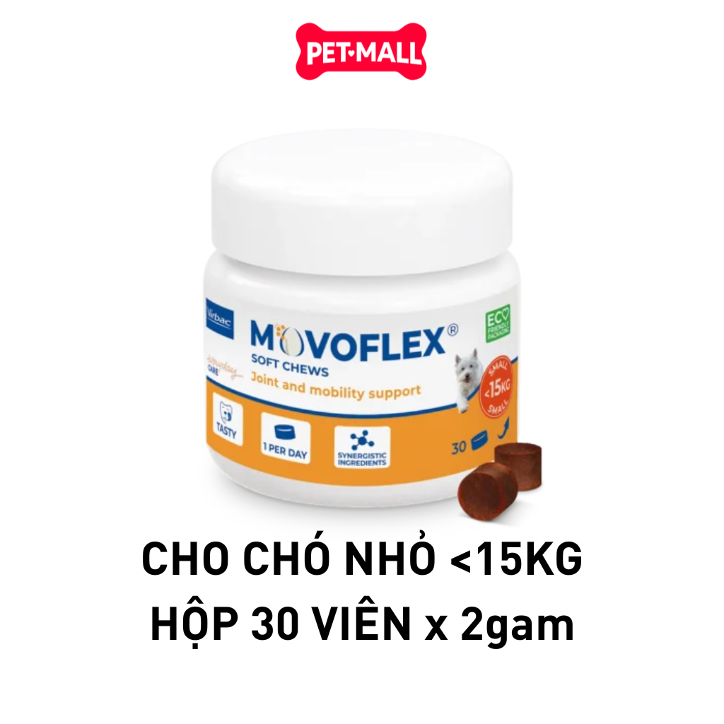 - Viên nhai hỗ trợ xương khớp Virbac MOVOFLEX soft chews for Dogs < 15kg - 30 viên