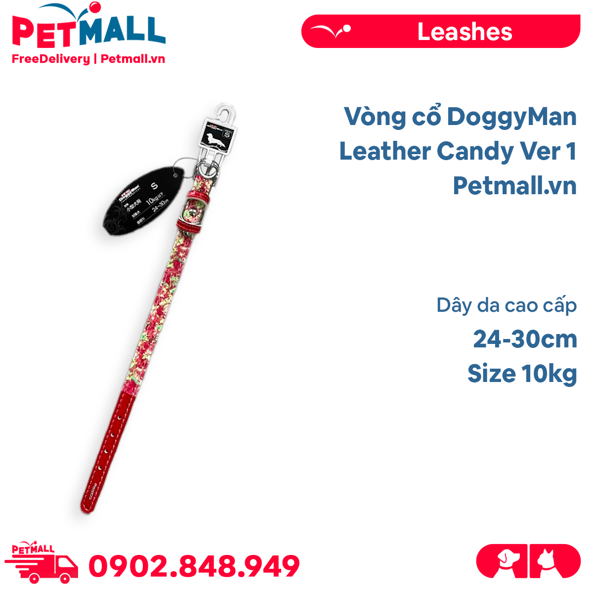 Vòng cổ DoggyMan Leather Candy Ver 1 - Size 10kg | 24-30cm - Dây da cao cấp Petmall