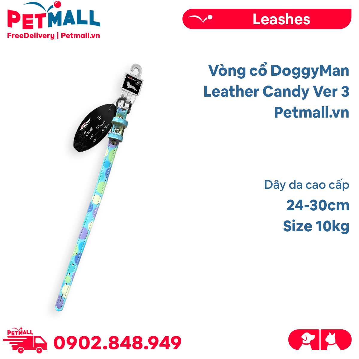Vòng cổ DoggyMan Leather Candy Ver 3 - Size 10kg | 24-30cm - Dây da cao cấp Petmall