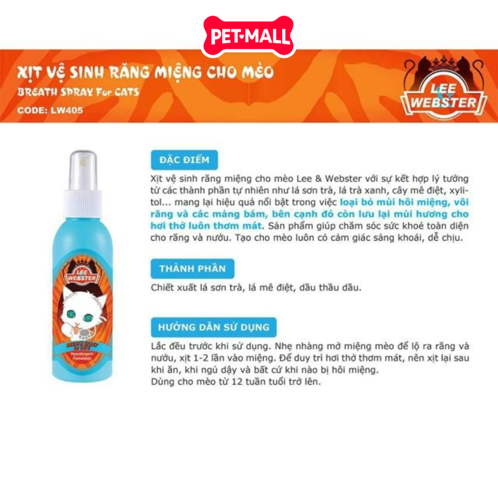 Xịt vệ sinh răng miệng Lee & Webster Breath Spray for cat 130ml