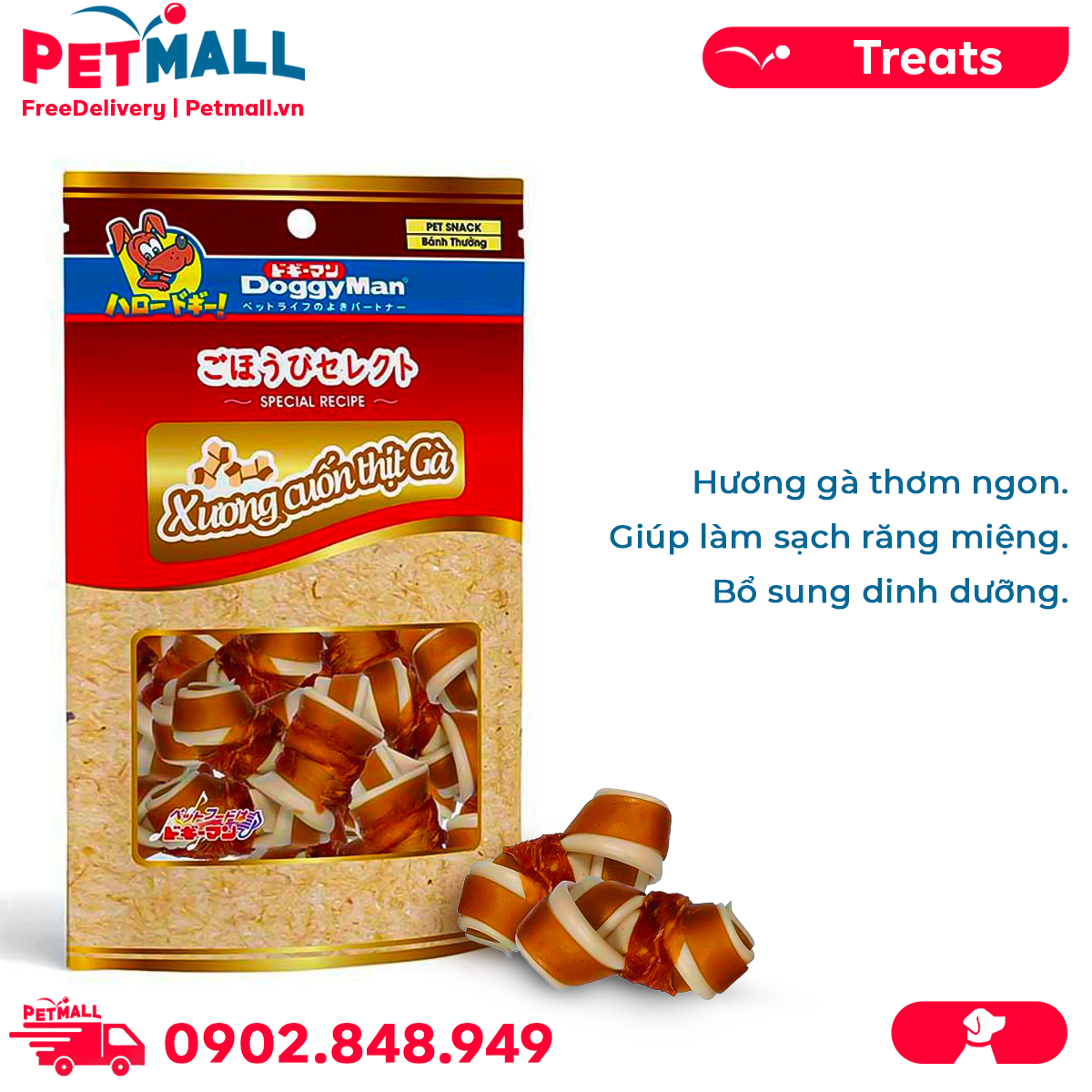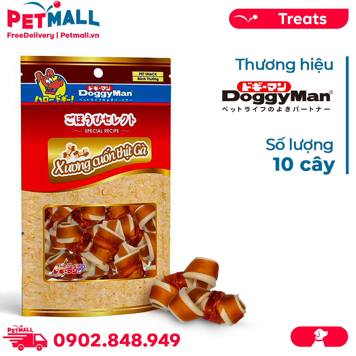 - Xương nơ cuộn thịt gà DoggyMan - 10 cây Petmall