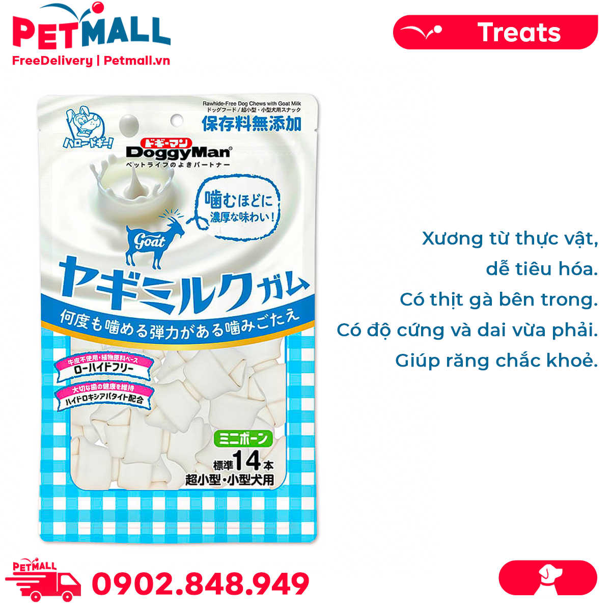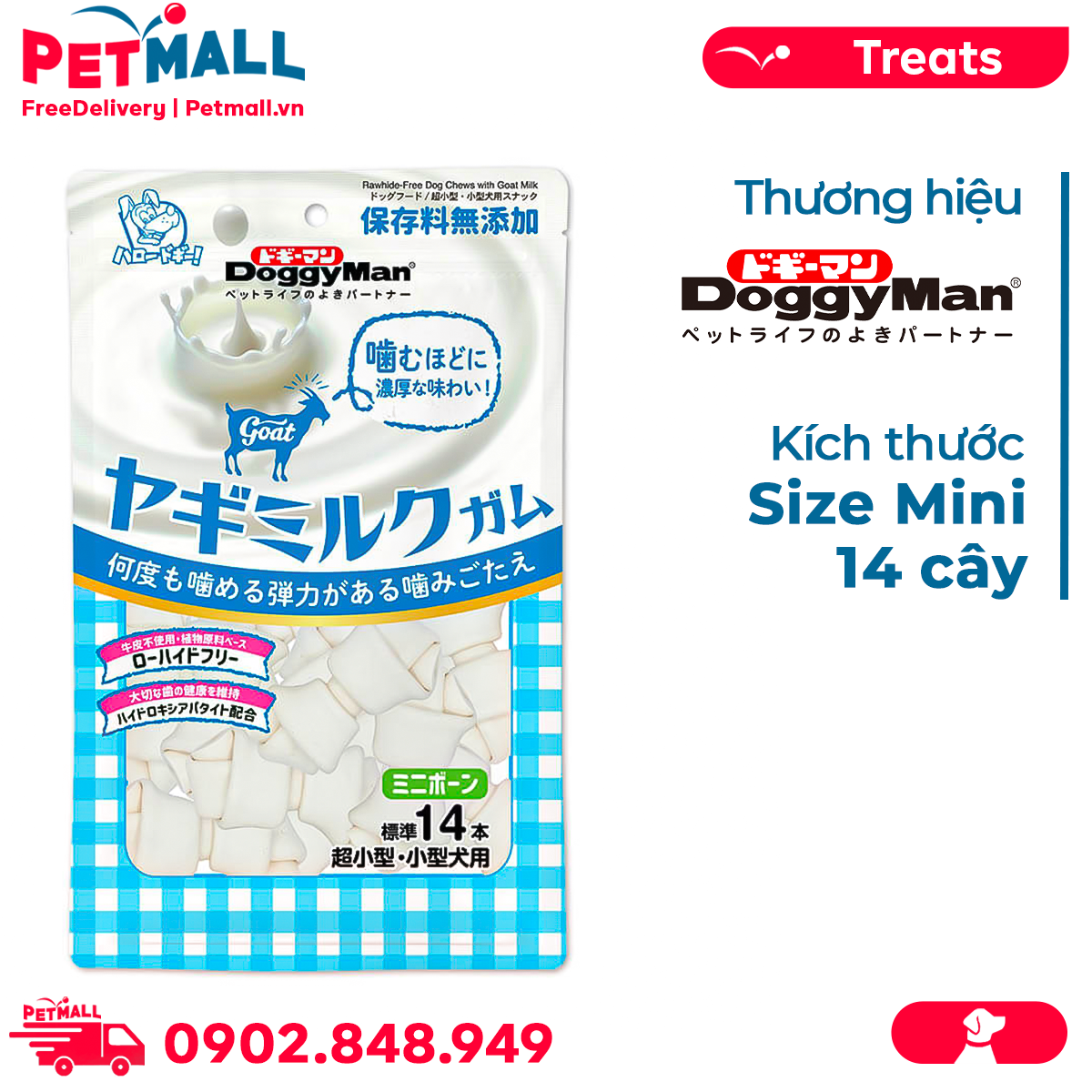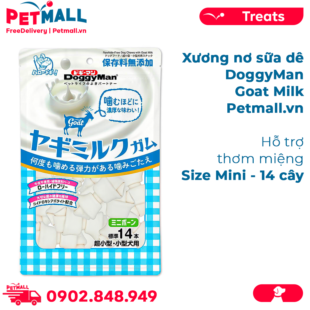 Xương nơ sữa dê DoggyMan Goat Milk Size Mini - 14 cây - Hỗ trợ thơm miệng Petmall